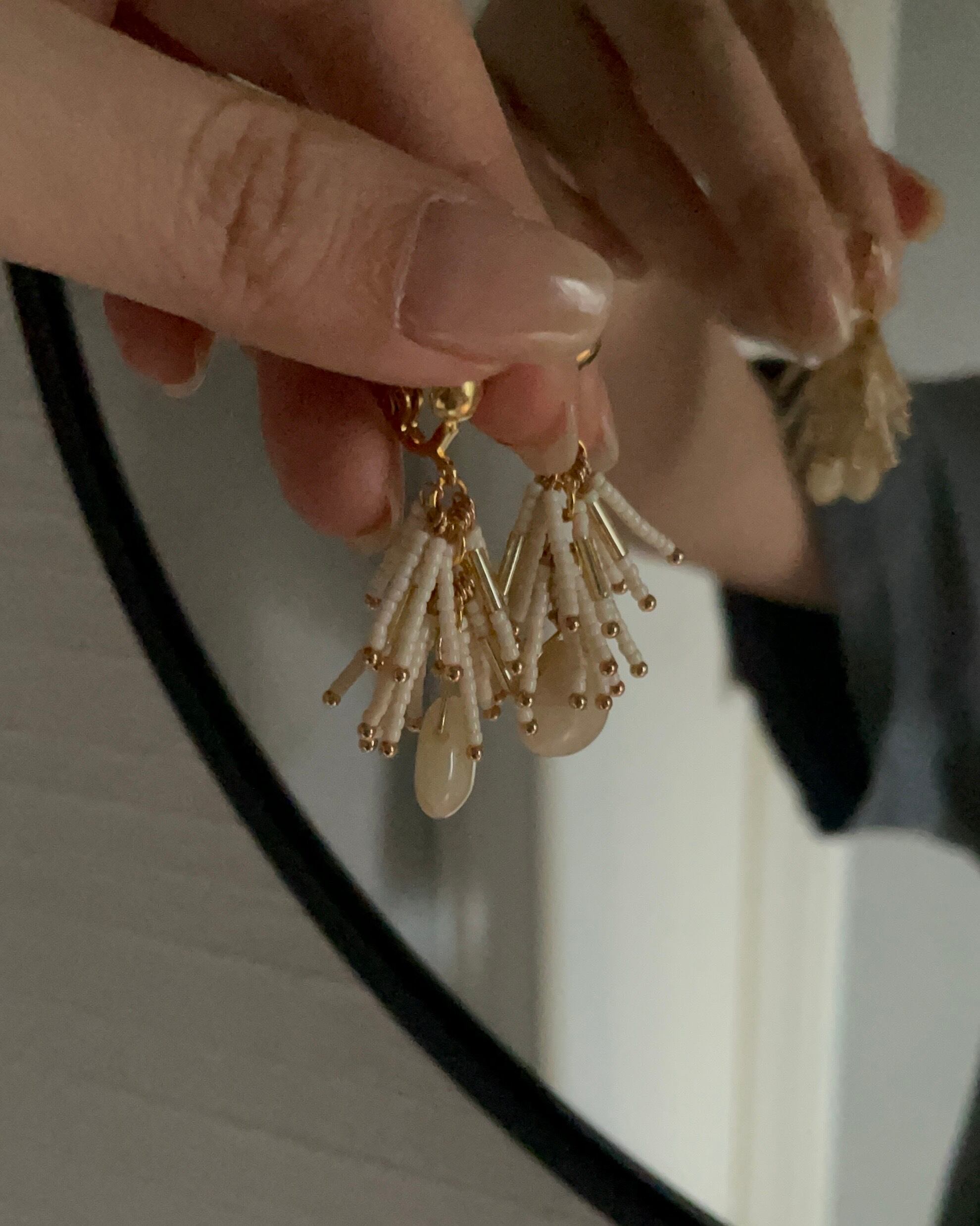極小のガラスビーズとゴールドの竹ビーズを